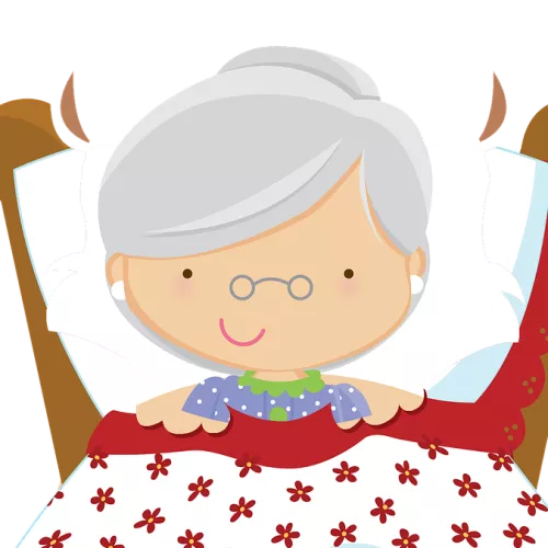 Le chasseur arrive à sortir la grand mère du ventre du loup mais comme il est également chirurgien il fait ça bien et le loup se réveille à l'hopital
